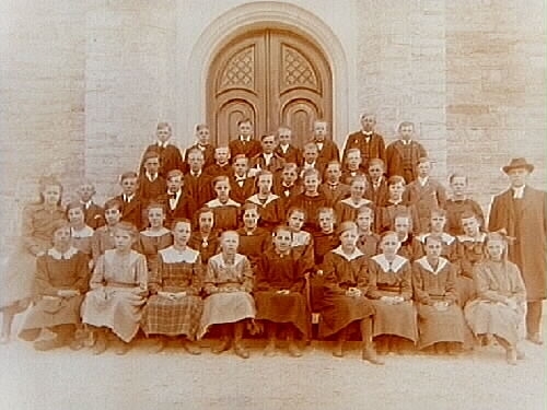 Konfirmander, 27 flickor, 21 pojkar och en präst.