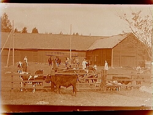 Ekonomibyggnader, fem hästar, tjurar och smådjur.