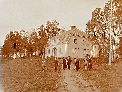 7 personer framför huset.