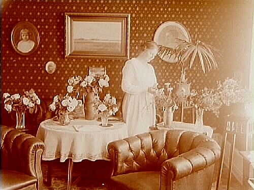 Rumsinteriör, en kvinna, fru Nordkvist.