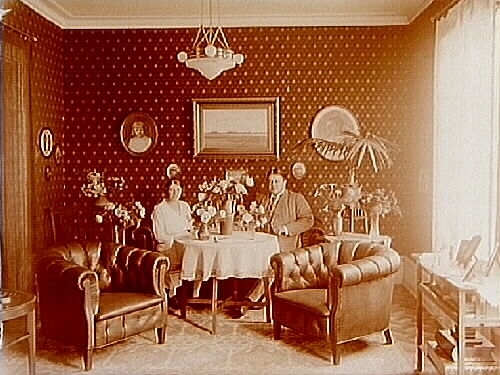 Rumsinteriör. ett par, herr och fru Nordkvist.