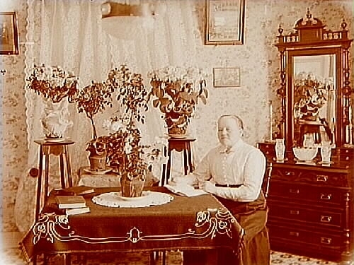 Rumsinteriör, en kvinna.