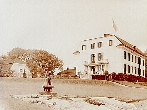 Götarsviks Herrgård, två och en halvvånings herrgårdsbyggnad med terass, balkong och brutet tak.