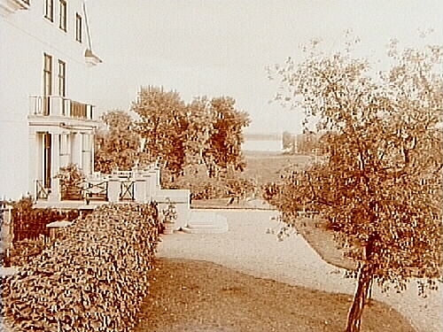 Götarsviks Herrgård, två och en halvvånings herrgårdsbyggnad med terass, balkong och brutet tak.