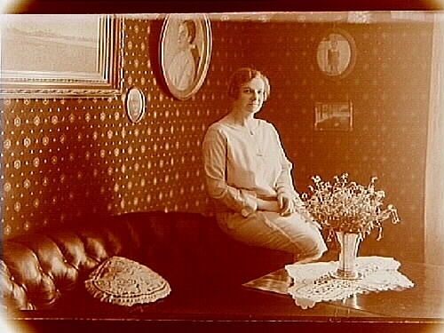 Rumsinteriör, en kvinna, fru Nordkvist.