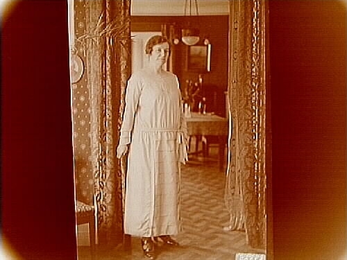 Rumsinteriör, en kvinna, fru Nordkvist.