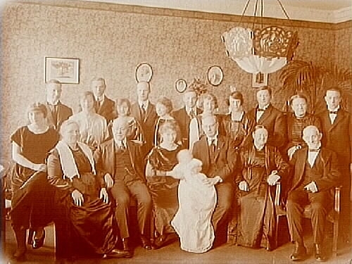 Rumsinteriör, släktgrupp 19 personer.