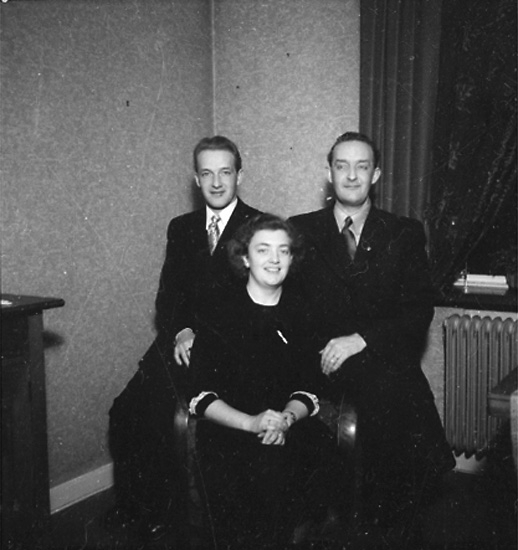 Rumsinteriör, familjegrupp tre personer.