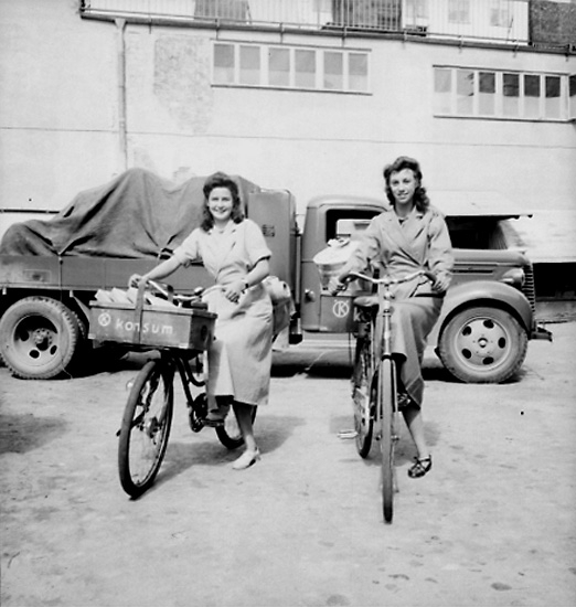 Konsums springflickor, två flickor med cyklar.