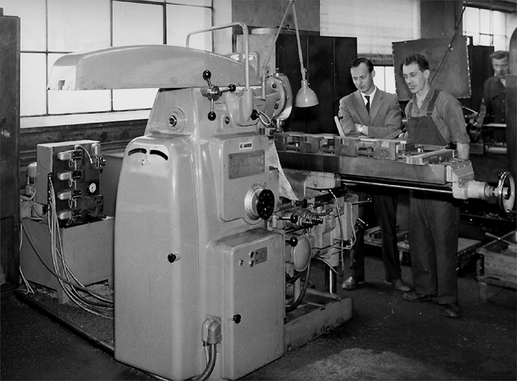 Titel: Gustafsson & Görtz, verkstadsinteriör, två män.