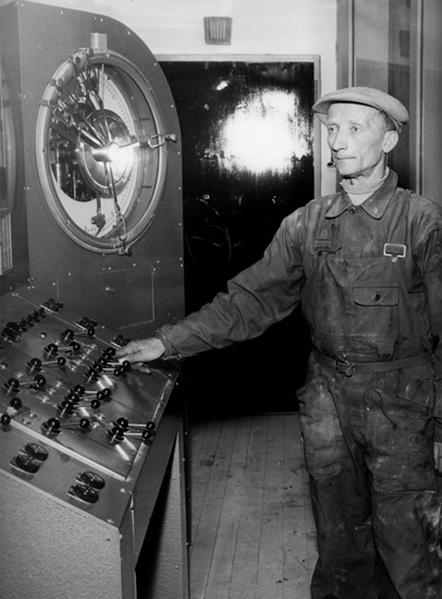 Hammars glasbruk, interiör, en man. Helge Pettersson.