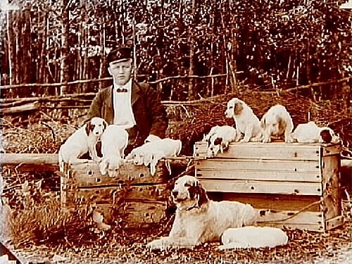 Tik med 8 valpar och husse.