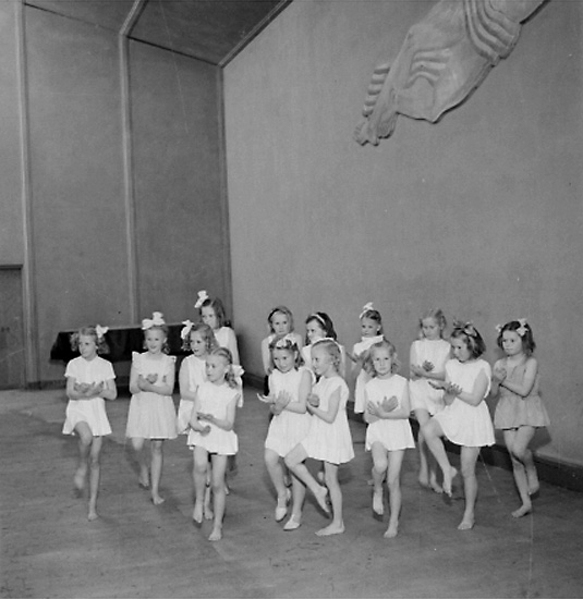 Gymnastik, flickgrupp.