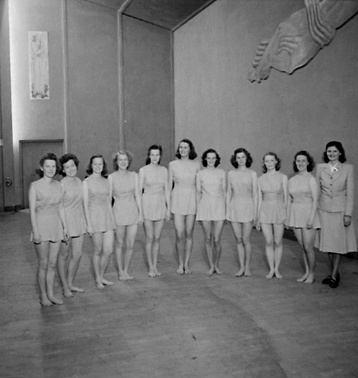 Gymnastik, flickgrupp.