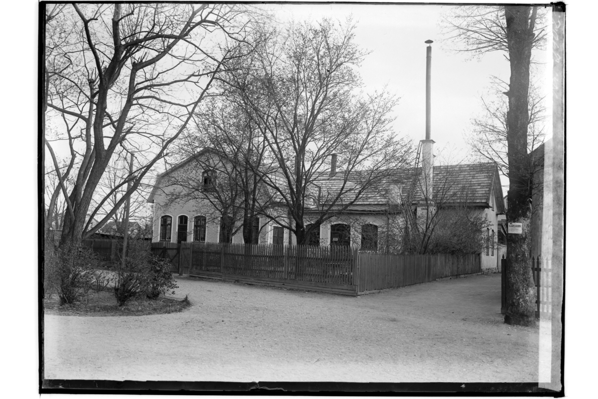 Örebro Ångtvätteri, envånings vinkelbyggd fabriksbyggnad.