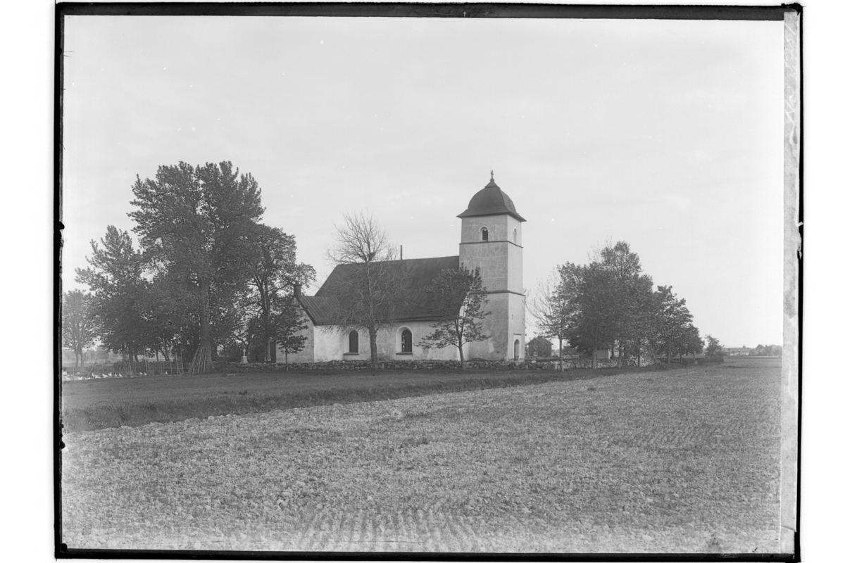 Gräve kyrka från norr, kyrkan och kyrkogården.