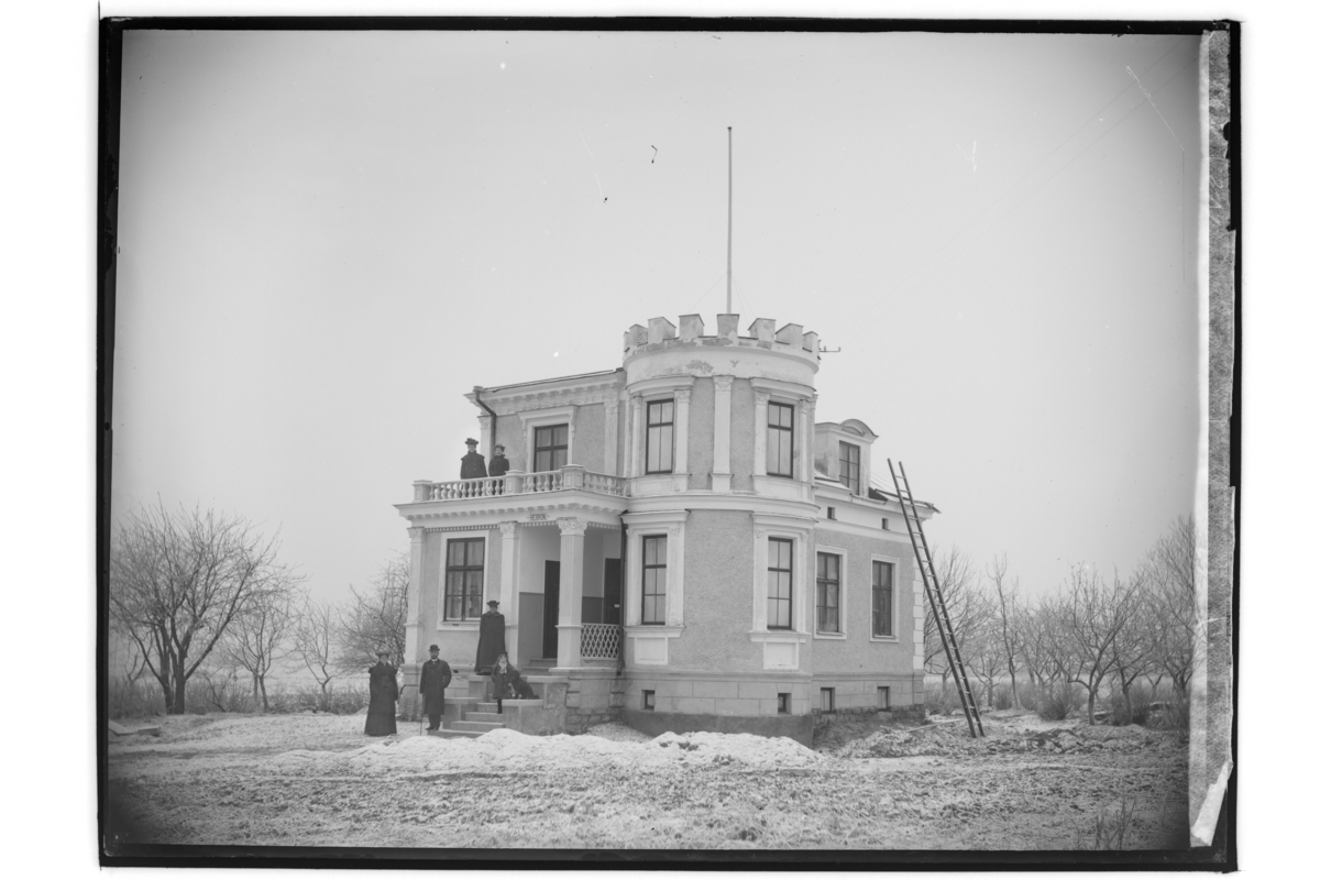 Villa Hebron, trähus i en och två våningar med fasad i beige puts. Huset har en synnerligen rik klassicistisk dekor i vit puts. Villan revs på 1980-talet.