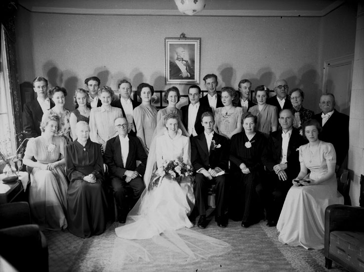 Bröllop, brudpar och bröllopsgäster på Hantverksföreningens lokal.