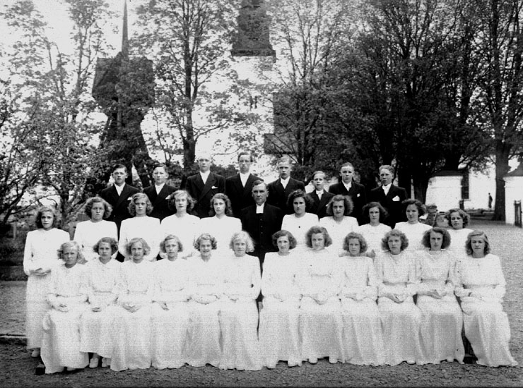 30 konfirmander, 22 flickor, 8 pojkar och kyrkoherde Johansson.