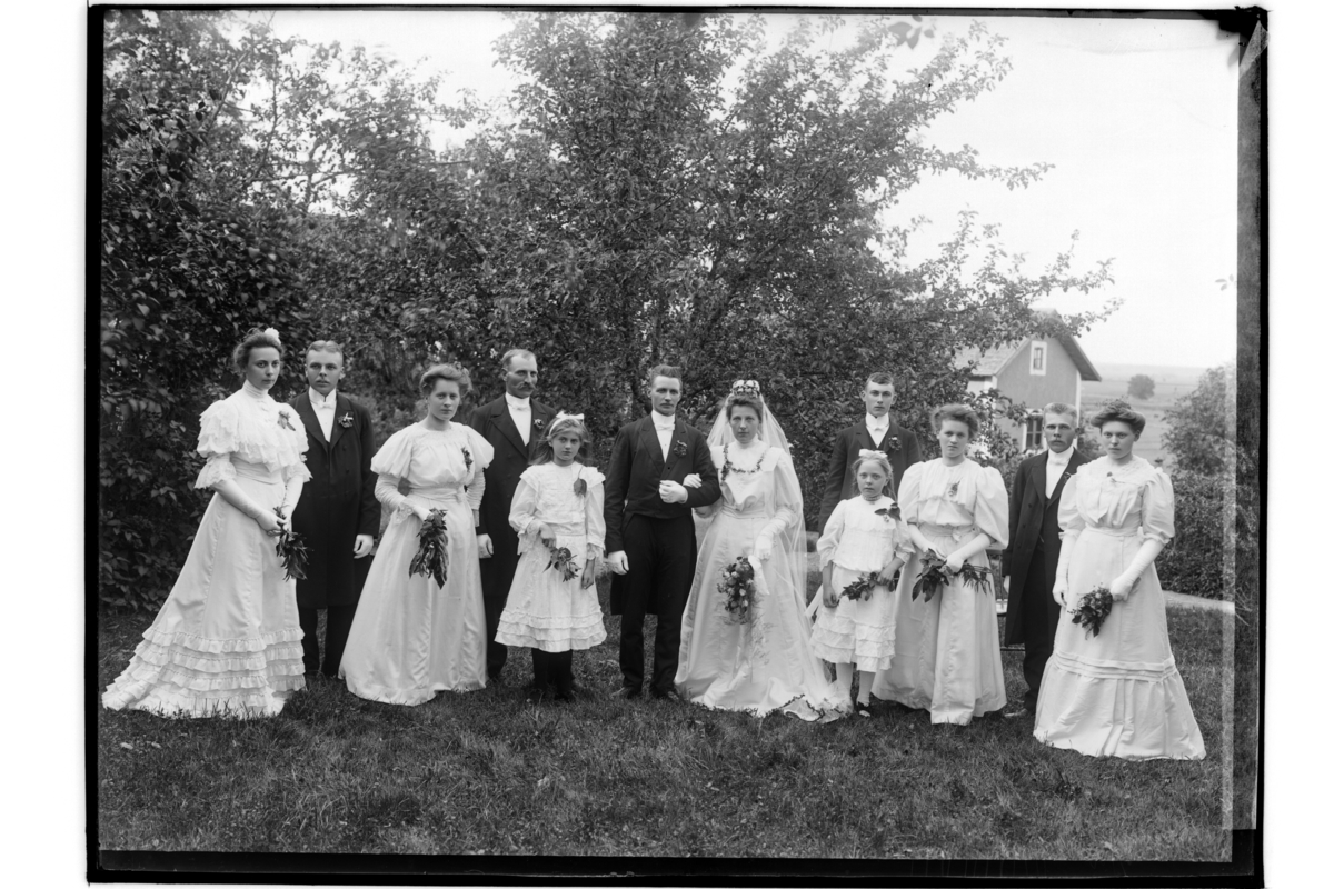 Brudpar med marskalkar och tärnor.