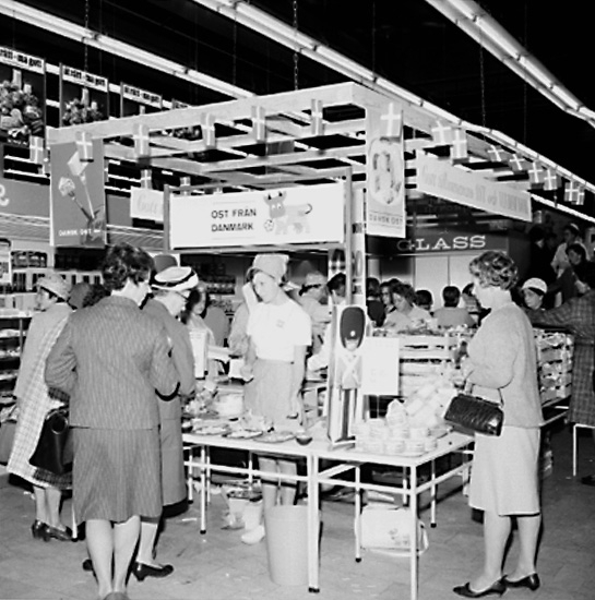 Konsum Domus, affärsinteriör, demonstration av dansk ost.