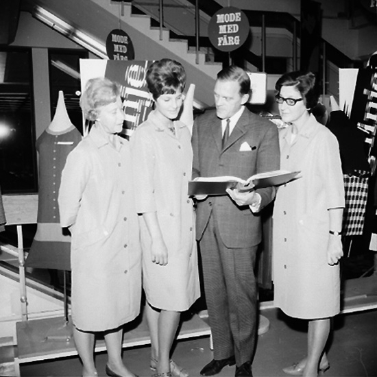 Konsum Domus, affärsinteriör, damkonfektion, fyra personer.