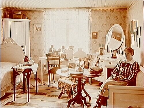 Sörby gård, rumsinteriör, en kvinna. Beställare: fru Alma Morén.