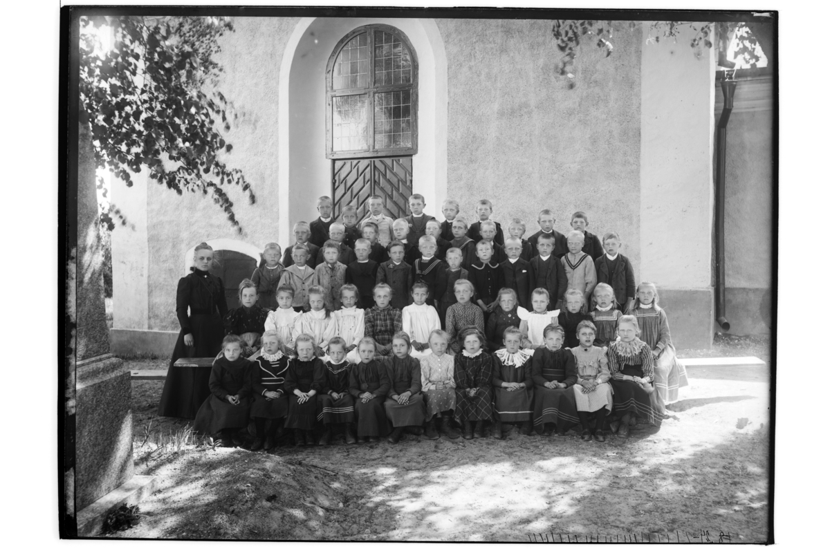 Rinkaby skola, skolklass, 51 barn med lärarinna.