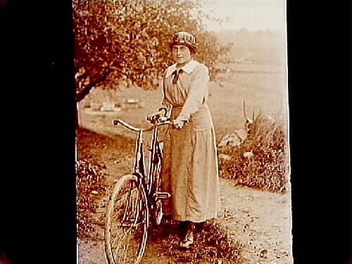 En kvinna med cykel.