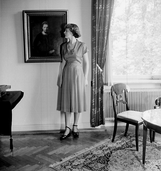 Rumsinteriör, en kvinna.