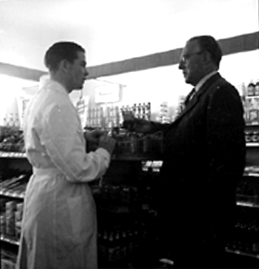 Konsum Lillån, affärsinteriör, två män.