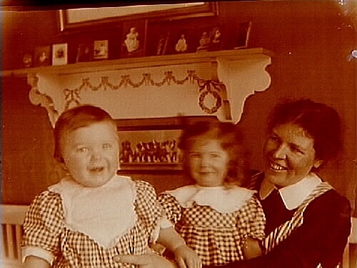 Gerda Thermaenius (född Callmander) med barnen Sven och Maj.