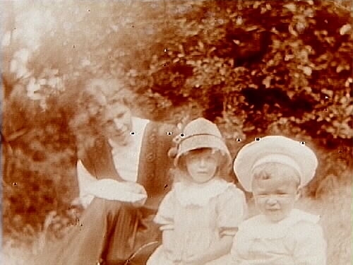 Gerda Thermaenius (född Callmander) med barnen Maj och Sven.