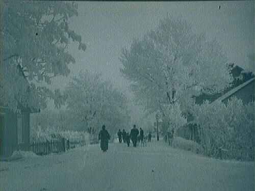Ett gatuparti från Hallsberg omkring sekelskriftet. Husen i förgrunden är förutvarande V Storgatan 11 och bakom huset där bokhandeln tidigare inrymdes. I fonden skymtar hattfabriken som brann ned 1964. På tomten till vänster finns numera Folkets Hus.