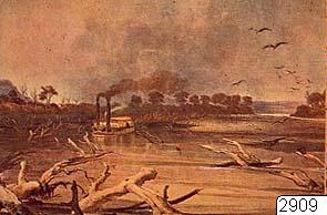 Ångfartyg på Missouri målad av Carl Bodmer 1883. Ur publ. Rachlis, E.:Praerieindianerne, Köpenhamn 1960 sid 90. För utställningen "Indianernas Vilda Västern" i Kronhuset 1975. Dublett finns. Se diabild med samma nr i kasetten för dubletter i arkivet.