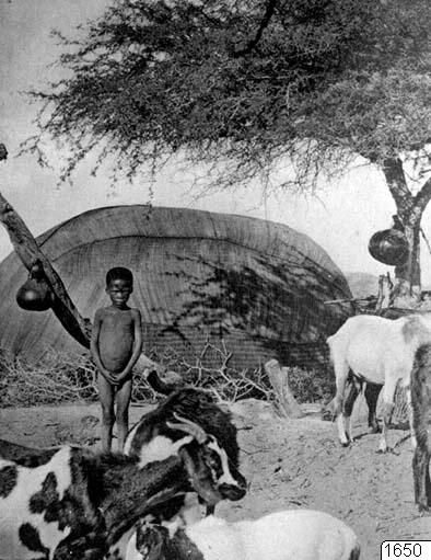Hydda under en giraffakacia. L. Schultze: Aus Namaland und Kalahari. Jena 1907. Taf. 11, efter p. 262.