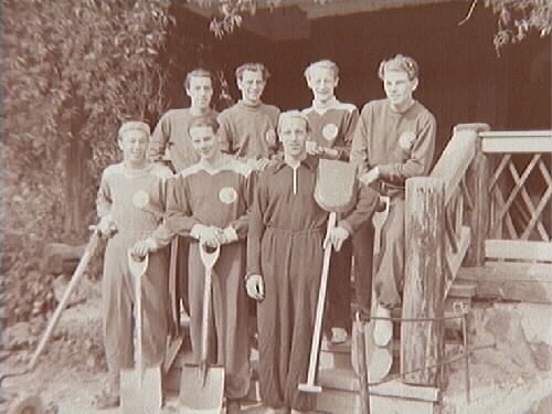 Övre raden, fr.v.; Algot Gevert, Ivar Sjöö, Sven Bergström och Bror Bodin. Nedre raden; Tjappe Magnusson, Folke Törnblom och Holger Gellert.