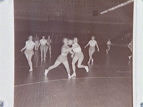 Damhandboll spelas vid Idrottshuset, lag okänt.