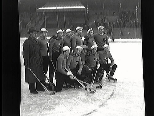 Bandy. ÖSK bandylag, framgångsrika, seriesegrare 1951. Stående fr.v. Bruno Frändå, Tage Magnusson, Jojje Gustavsson, Orvar Bergmark, Olle Sääw, Hilding Hanell. Knästående: Sven Bergström, Folke Törnblom, Karl Ivar Ekberg, Erik Svensson och Sten Karlsson.