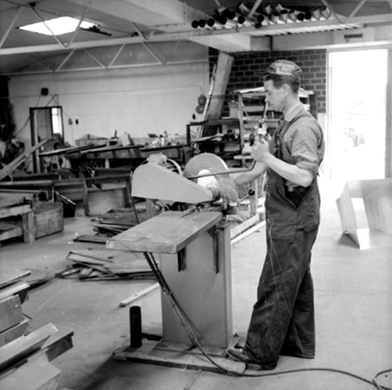 Gustafsson & Görtz, verkstadsinteriör, en man.