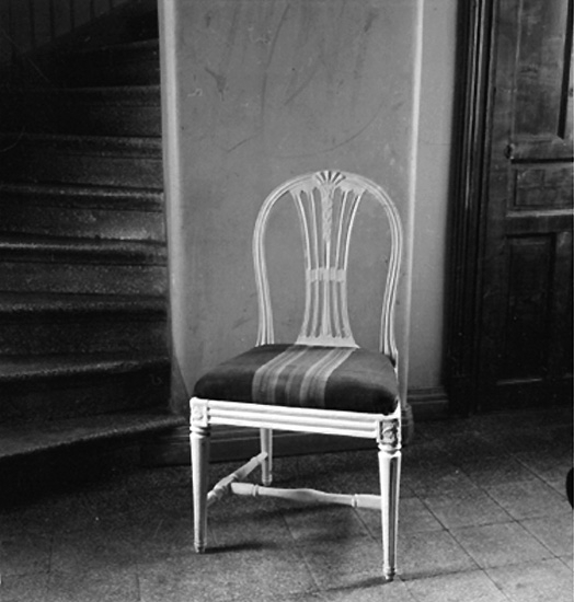 Antikboden, interiör, en stol.