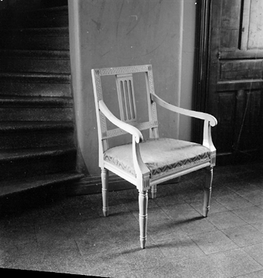 Antikboden, interiör, en stol.