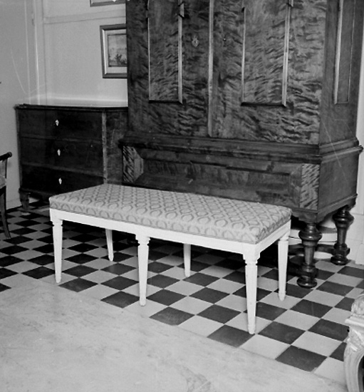 Antikboden, interiör, en bänk.