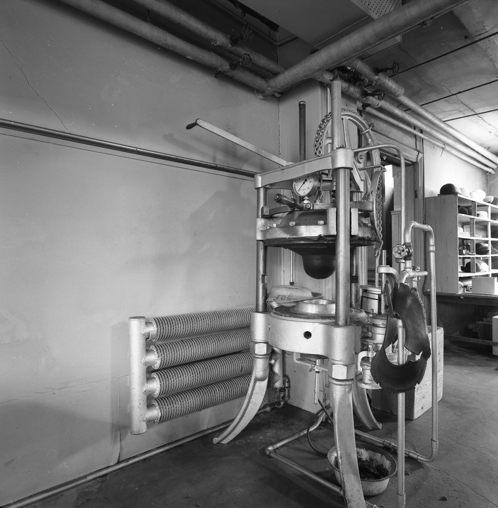 Lindbergs Strå-och Filth. Hattillverkning. 207/67 Maskin för pressning av panamahatt.