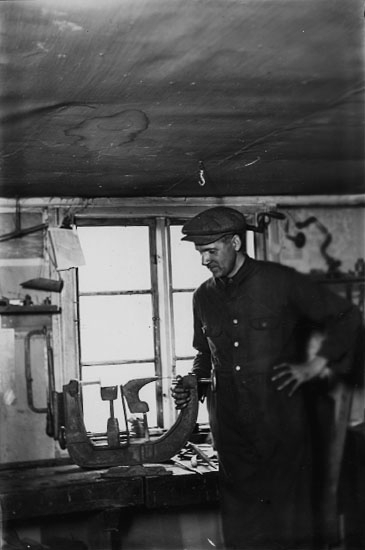 Karl Karlsson, Österäng, Norrbyås sn, fotograferad i verkstad vid Hagalund.