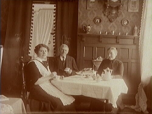 Fru Larsson och dottern Ellen tillsammans med en äldre man.
