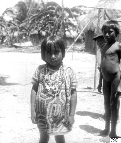 Mola-klädd liten flicka. Se E. Nordenskiöld: Indianerna på Panamanäset, Sthlm 1928, bild 161. Bildark: 4444. Neg. nr: 1150.