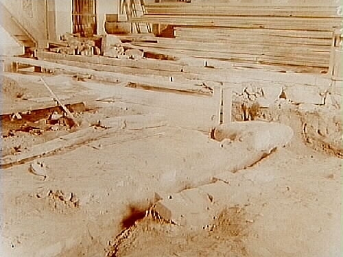 Viby kyrka, utgrävning. Mittmuren, östra delen, från sydväst.