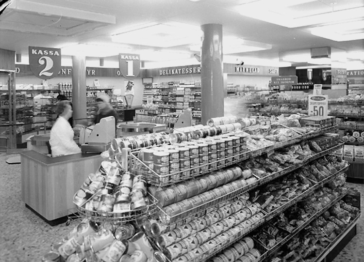 Konsum Ströget, affärsinteriör, två kvinnor.