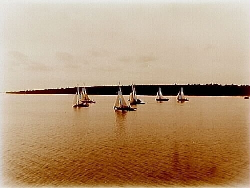 Åtta segelbåtar, andra kappseglingen, första starten.